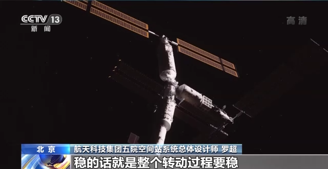 航天科技集团五院空间站系统总体设计师 罗超:启动要缓慢,你不能很剧烈地启动,因为剧烈启动的话会对舱体带来一些干扰,“稳”的话就是整个转动过程要稳,通过关节的联动来实现舱体的一个平动缓慢的过程。