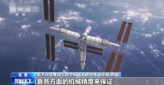 航天科技集团五院空间站系统总体设计师 罗超:我们整个转位机构这种转位方式,要求最后到位的精度要很高。通过我们一些机械设计保证,采取一些锁定的装置,把它锁得很准确,避免在上行震动过程中对它中间一些环节的破坏,靠各方面的机械精度来保证。