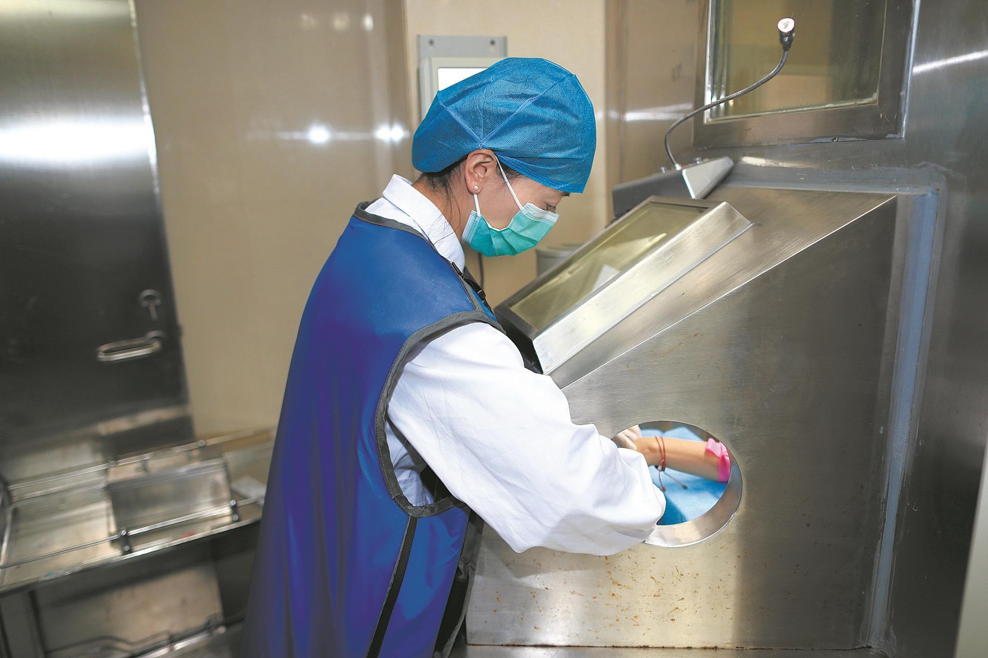 2024年12月11日,苏州核工业总医院内,医护人员利用核素为患者进行科学安全的治疗。