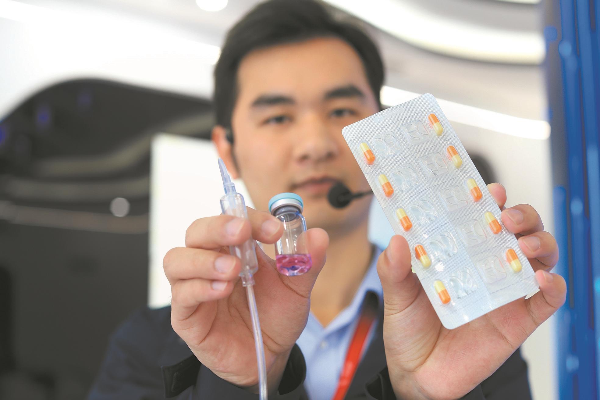 2024年12月13日,深圳中核海得威,讲解人员向记者展示利用同位素碳-14研制的检测试剂和胶囊。