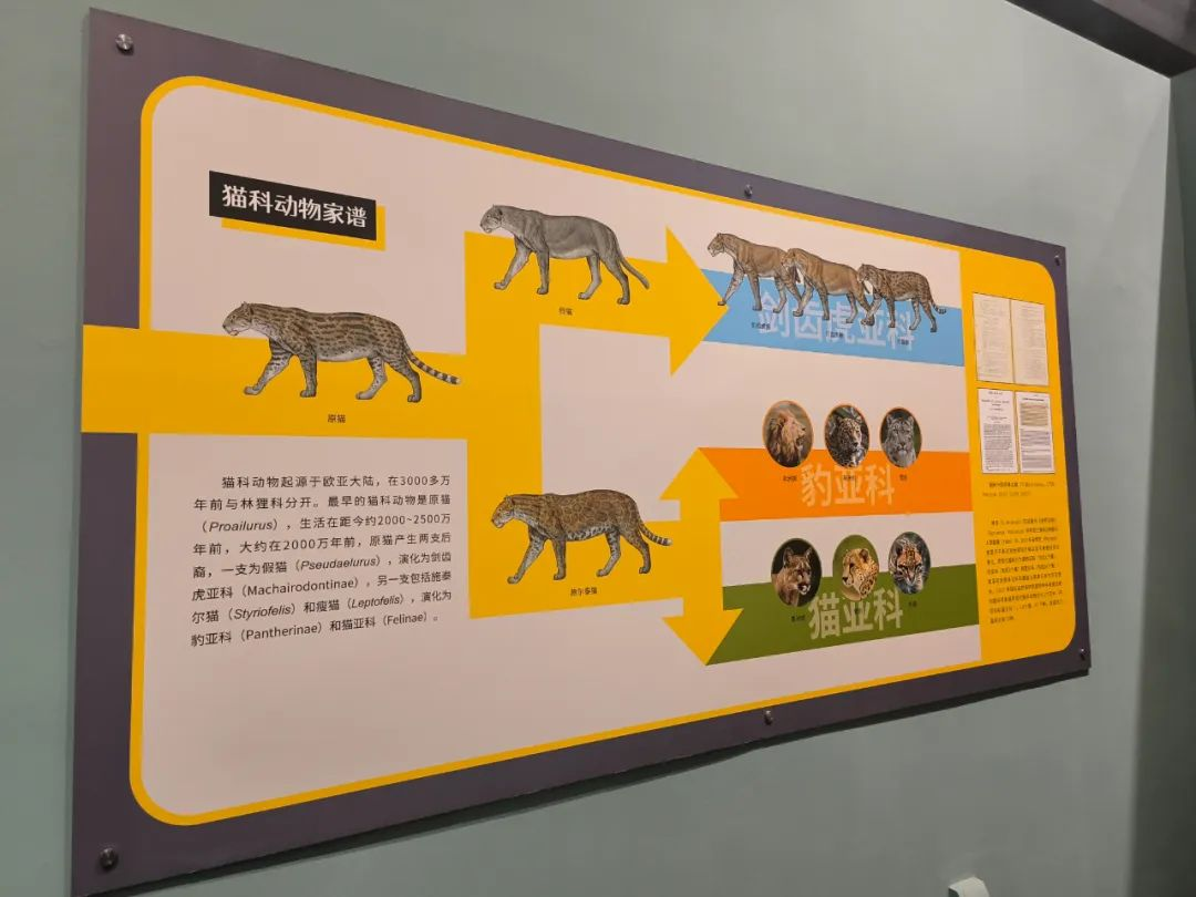 8月23日—9月3日,国家自然博物馆推出“猫之由来——猫科动物的演化”原创公益展,共展出生物标本38件,用综合展板、互动游戏和多媒体视频等多种形式,展示了各地质历史时期的