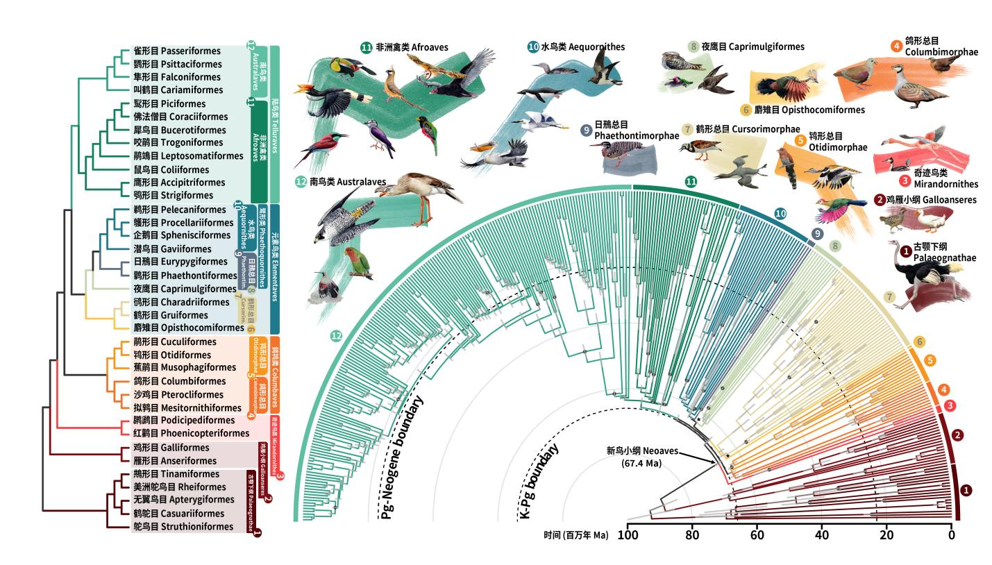 4月2日,以我国科学家为主导的“万种鸟类基因组计划”发布了第二阶段的研究成果,研究团队基于计划第一阶段所构建的现生鸟类基因组图谱,重建了现生鸟类演化的生命之树。该研究厘清了现生鸟类各类群之间的关系,提出了新的分类方案,解决了鸟类类群关系长达一个多世纪的争议,为正确理解鸟类物种演化及复杂性状演化奠定了坚实基础。相关内容已发表在《自然》杂志。