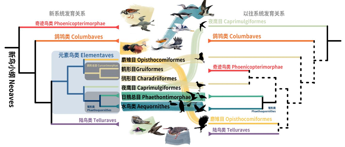 在过去100多年里,鸟类系统分类学的研究人员通过不同数据类型,例如,形态学数据、线粒体数据、少量蛋白质编码基因序列数据和鸟类物种基因组数据等等,对新鸟小纲主要类群之间的系统发育关系,提出了各种各样的观点,也产生了许多争议。这也使得新鸟小纲内部的演化关系,成为鸟类系统发育尚未厘清的重要问题之一。