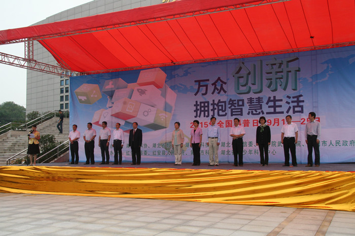 黄冈市委副书记、市长、党组书记陈安丽主持了启动仪式,此次活动以“万众创新、拥抱智慧生活”为主题,来自湖北的30多所高校、科研院所及学会的100多位专家学者,齐聚红安与广大群众一起开展科普宣传。主场活动包括“科技创新助推大别山发展”成果展示和交流、科技创新宣传、科普宣讲、青少年科技传播体验互动、李德仁院士报告会等。