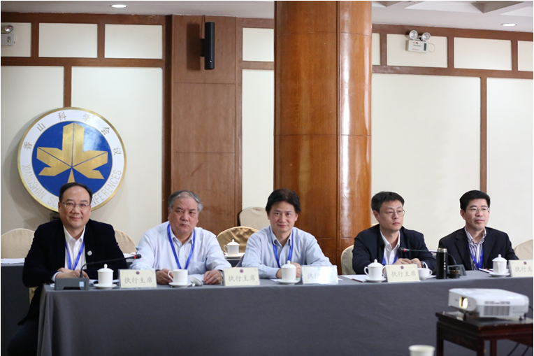 执行主席薛强研究员、赵阳升院士、吴宏伟教授、王发洲教授、高福平研究员主持会议(从左到右)