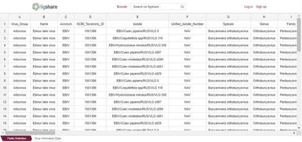 吸血节肢动物中传播循环的病毒有两大类,即虫媒病毒(arbovirus)和节肢动物特异性病毒(arthropod-specific virus,ASV)。虫媒病毒能在脊椎动物和节肢动物中复制,对人类或动物具有致病性,给全球公共卫生造成负担。节肢动物特异性病毒仅在节肢动物中复制,可能是虫化病毒进化的起源。然而,目前没有涵盖所有已知虫媒病毒和节肢动物特异病毒种类、生物安全风险等级、基因组节段、地理分布等信息的综合数据集。