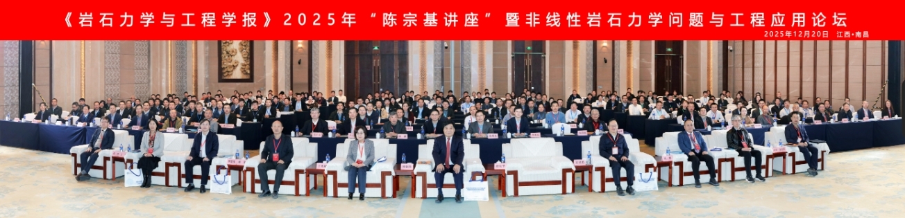 12月19日至21日,2025年“陈宗基讲座”暨非线性岩石力学问题与工程应用论坛在南昌召开。本次大会由岩石力学与工程学报、中国岩石力学与工程学会、中国科学院武汉岩土力学研究所(以下简称“武汉岩土所”)、岩土力学与工程安全全国重点实验室共同主办,南昌大学、《岩石力学与工程学报》编辑部、武汉大学及华东交通大学联合承办。来自武汉岩土所、南昌大学、武汉大学、华东交通大学、中国矿业大学、山东大学、重庆大学、长江科学院、清华大学、中国电建集团成都勘测设计研究院有限公司等40余所国内外知名高校、科研院所与企业单位的300余位专家学者出席了本次大会。