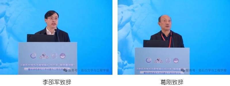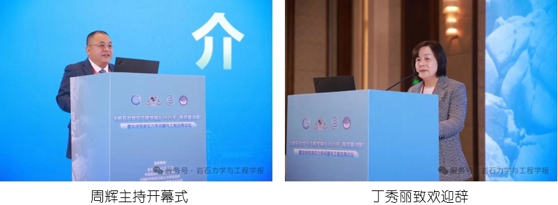大会开幕式由武汉岩土所党委副书记(主持工作)、副所长周辉研究员主持,中国岩石力学与工程学会副理事长丁秀丽致欢迎辞,武汉岩土所副所长(主持工作)李邵军研究员,南昌大学党委常委、副校长葛刚分别致辞。