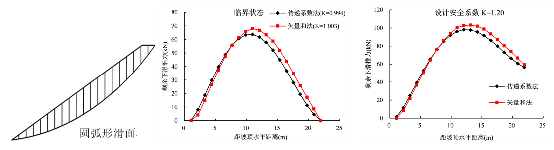 图1 圆弧滑移面边坡体下滑推力曲线对比图