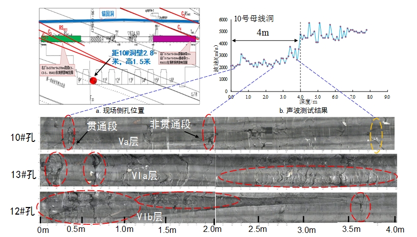 在雅砻江联合基金资助下,项目《复杂地质条件下大型地下洞室群稳定性一体化仿真分析理论与动态控制方法》(No. U1965205)依托卡拉水电站大型地下洞室群自身“性状多变岩性、洞群多联通”的结构特点,从大型洞室岩体变形破坏的原位立体观测技术、层状岩体的理论力学模型,施工过程一体化仿真与反馈分析方法、围岩安全预警与稳定性调控技术等方面深入开展研究工作。通过4年联合攻关,建立了大型洞室群变形与破坏的原位、立体、多物理量综合观测技术体系(图1),多角度揭示了开挖强扰动下围岩的卸荷力学响应行为和局部失稳破坏模式;开展了层状岩石的真三轴加卸载与剪断试验,建立层状岩体非同步劣化力学模型,合理描述了层状岩体的非同步变形破坏连锁机制(图2);开发了大型地下洞室群一体化开挖支护优化分析技术与辅助软件平台;建立大型洞群一体化开挖支护过程中岩体分级安全预警与破裂抑制的稳定性主动调控技术,并在卡拉水电站地下洞室建设中取得较好应用效果(图3)。
