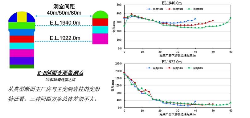 图3不同中隔墙间距下大型洞室群围岩典型变形特征分析