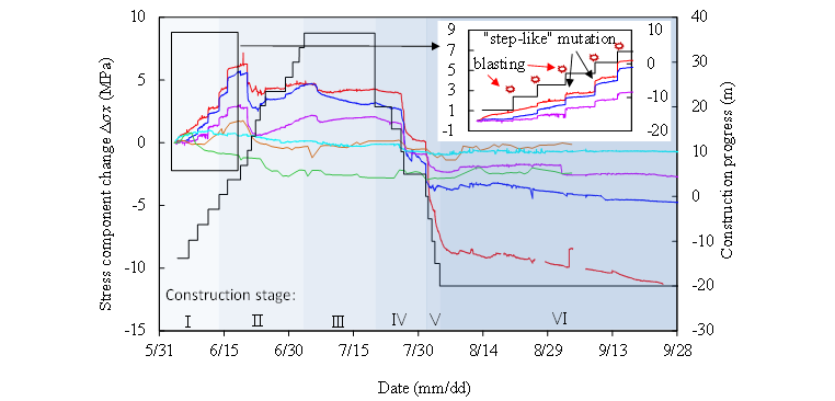 图3 中国锦屏地下实验室二期B2实验室扰动应力量值时间变化特征
