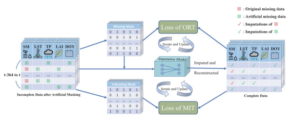 地表土壤水分监测对气象预报、水文研究和气候变化分析等至关重要。然而,由于现有的微波传感器观测能力以及卫星轨道覆盖和植被覆盖等因素的影响,微波遥感土壤水分产品存在大面积的空值区域,限制了此类产品的应用。为了解决这一问题,中国科学院成都山地灾害与环境研究所研究员赵伟团队提出了基于深度学习模型的分层数据重建方法。这一方法填补了欧洲航天局(ESA)气候变化倡议(CCI)土壤水分产品的空间空白。