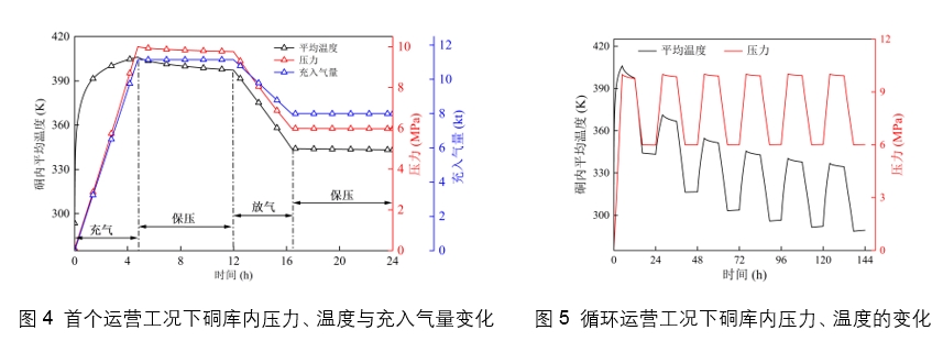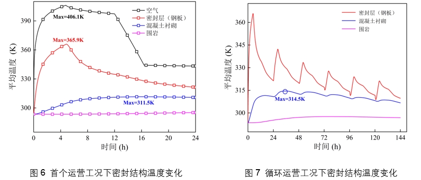 基于地下内衬硐库的压缩空气储能,以其发电时间长、规模大、建设周期短、选址灵活、工程造价低、运行周期长、环境友好等优势,在新型储能领域展现了较强的生命力,将有力地促进新型电力系统的构建和新能源的高质量发展。与传统地下空间的运行特点有较大不同,在充放气过程中,硐库不仅需要承受交变高内压膨胀压力,同时伴随着显著的温度变化。压缩空气储能地下内衬硐库的运营周期通常以天为单位,即每日要完成一次充气、保压、放气、保压的工作循环。频繁、快速的充气和放气过程,使得库内产生显著的温度变化,加上交变的库内压力,将对密封结构的安全性和稳定性带来挑战。