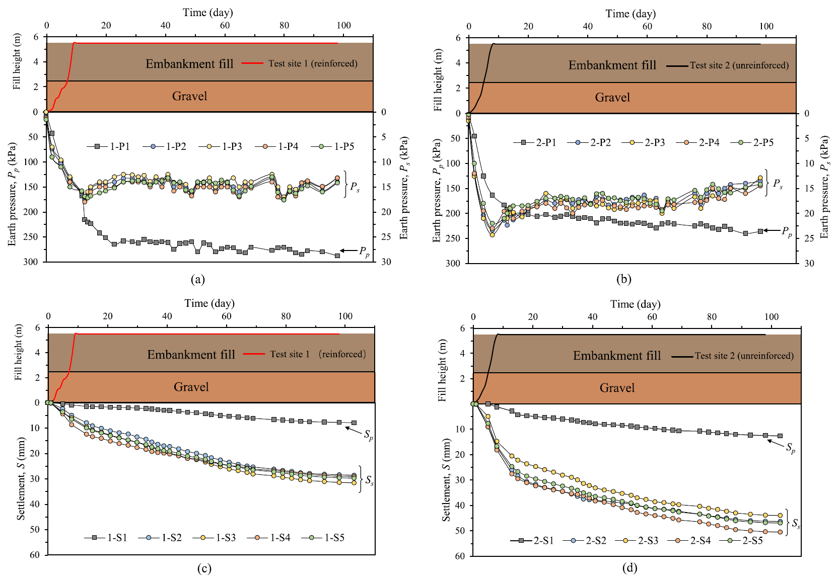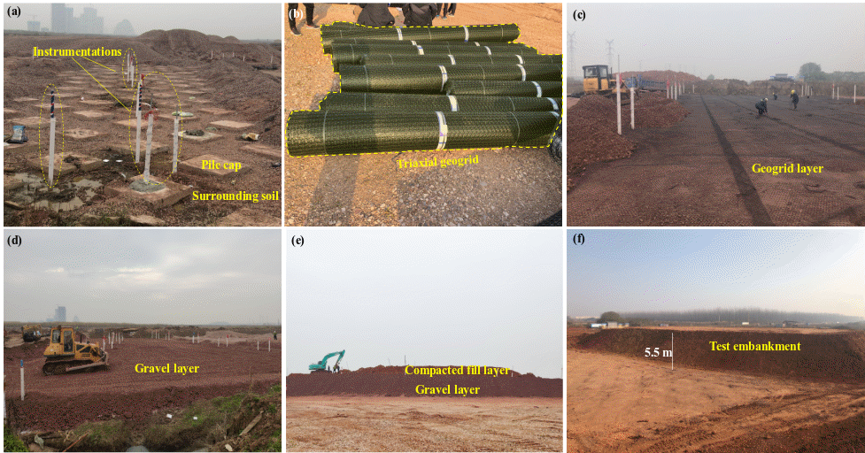 针对如此复杂的地层条件与苛刻的设计标准,中国科学院武汉岩土力学研究所特殊土力学团队张先伟研究员和王港博士研究生等人在项目施工初期就入驻现场,开展了长周期大型足尺的试验段路基沉降监测与评估的科研工作,通过对堆载过程中的地下水、土压力、孔隙水压力、地表沉降、深层土的竖直沉降和水平位移进行监测,结合室内试验与数值模拟,预测与评估了运营期赛道的沉降,提出了PHC管桩和CFG桩的施工工法,并被设计方采纳,这为武汉智能网联汽车测试场的安全稳定性提供了技术支撑。