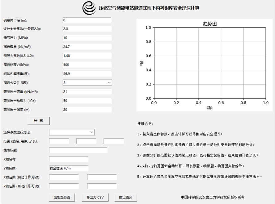 图5 压缩空气储能电站隧道式地下内衬硐库安全埋深计算