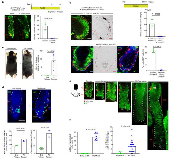而其他具有自我再生能力的干细胞,例如毛囊干细胞,不具备McSC的可塑性,它们在成熟时只沿既定的时间轴向一个方向移动。这也在一定程度上解释了为什么即使色素沉着失败(头发变白)时,头发也能继续生长。